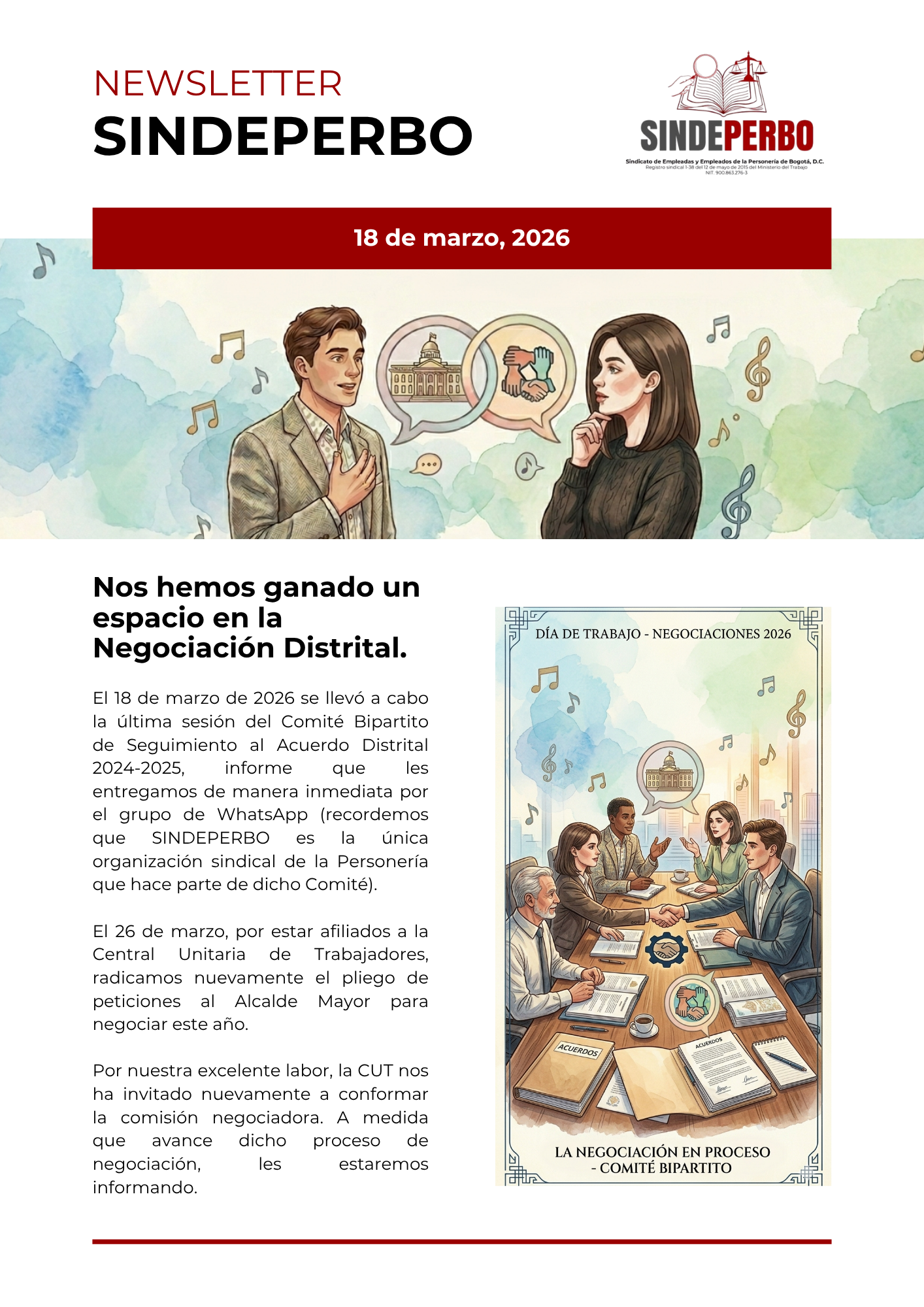 Newsletter SINDEPERBO continúa fortaleciendo su presencia en los escenarios clave de negociación distrital.